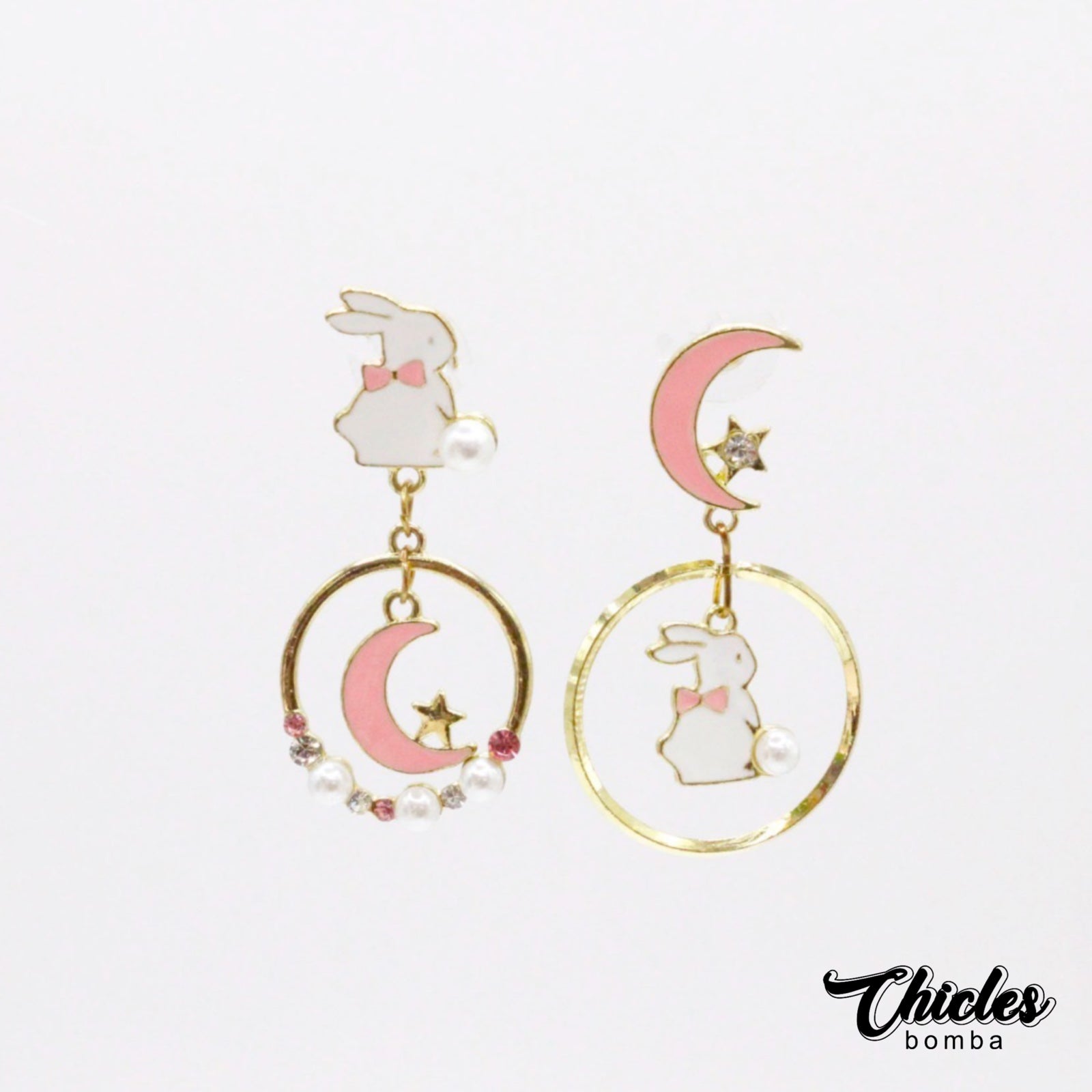Aretes Asimétrico Conejo y Luna