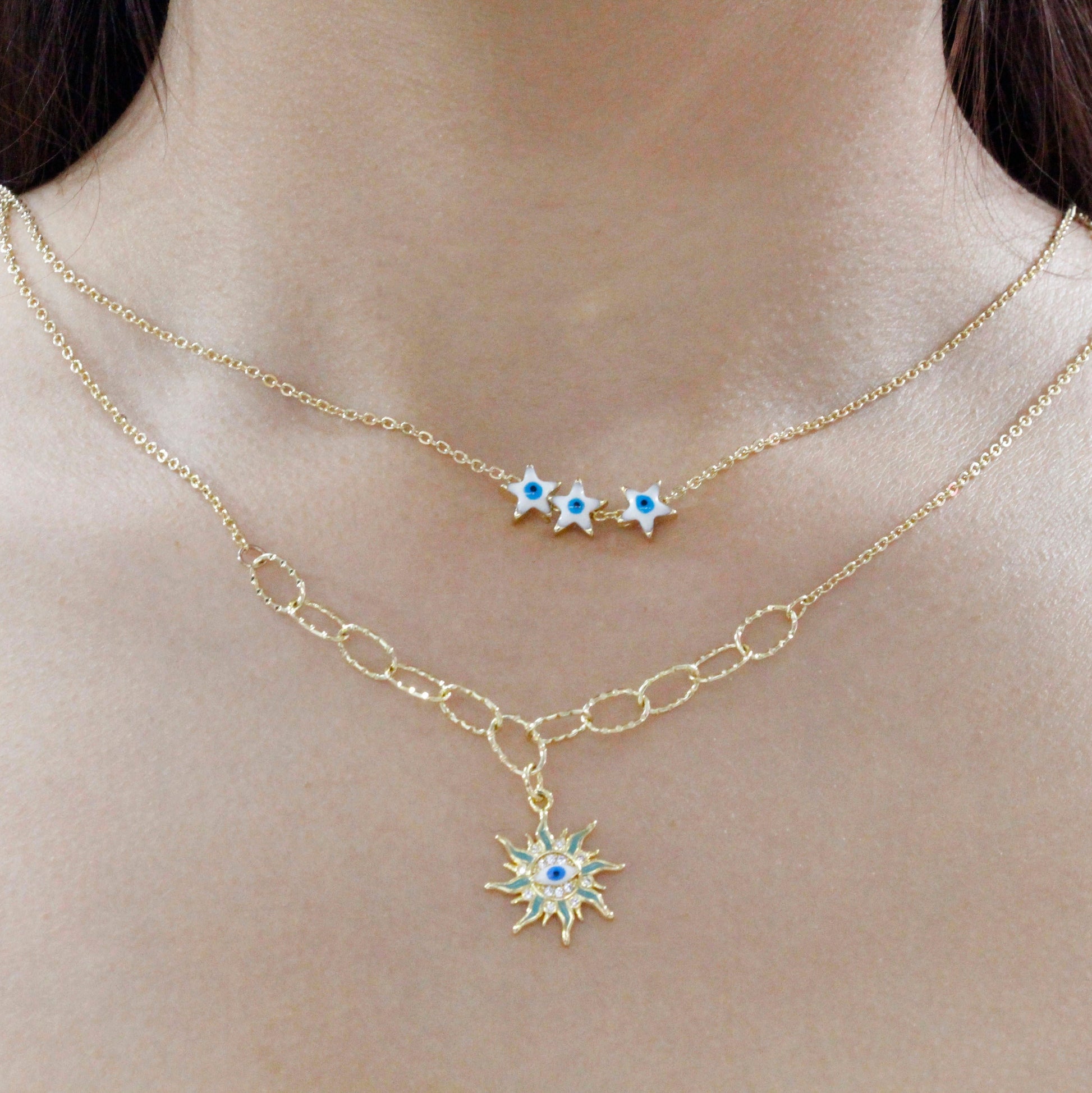 Collar Doble Dorado Sol con Ojo Turco
