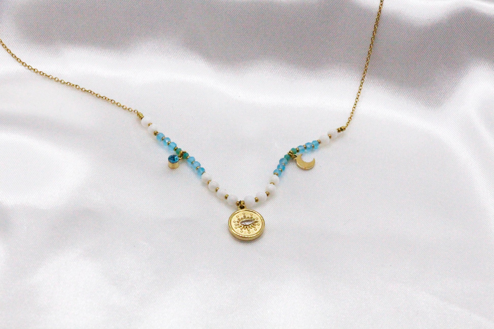Collar Dorado Con Azul Ojo Turco