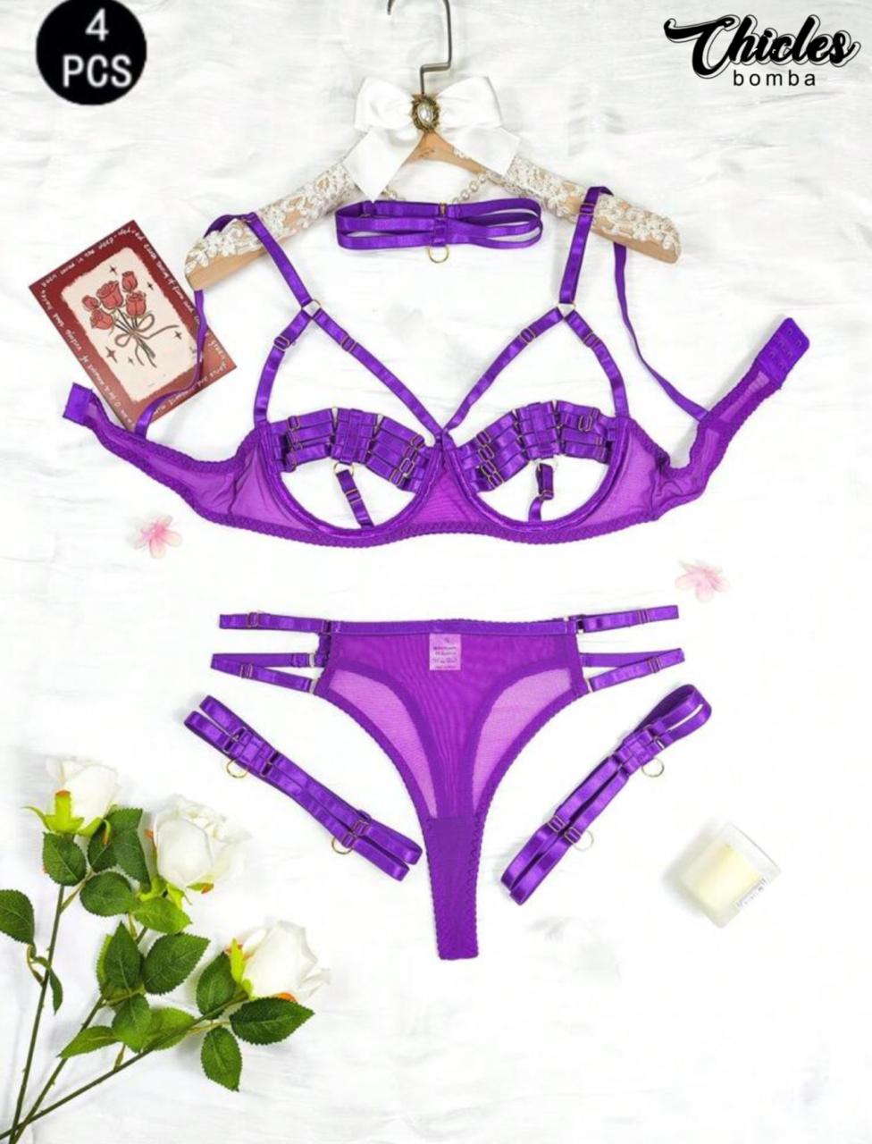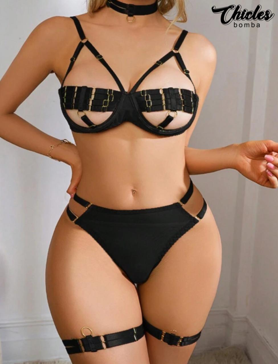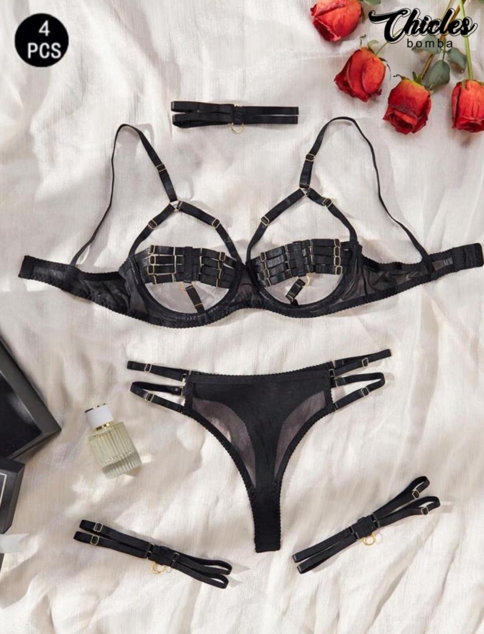 Envuélvete en pura sensualidad con este exquisito conjunto de lencería de encaje. Suave al tacto y con detalles que resaltan tu figura. Los tirantes ajustables garantizan un ajuste ideal, mientras las transparencias añaden ese toque irresistible.