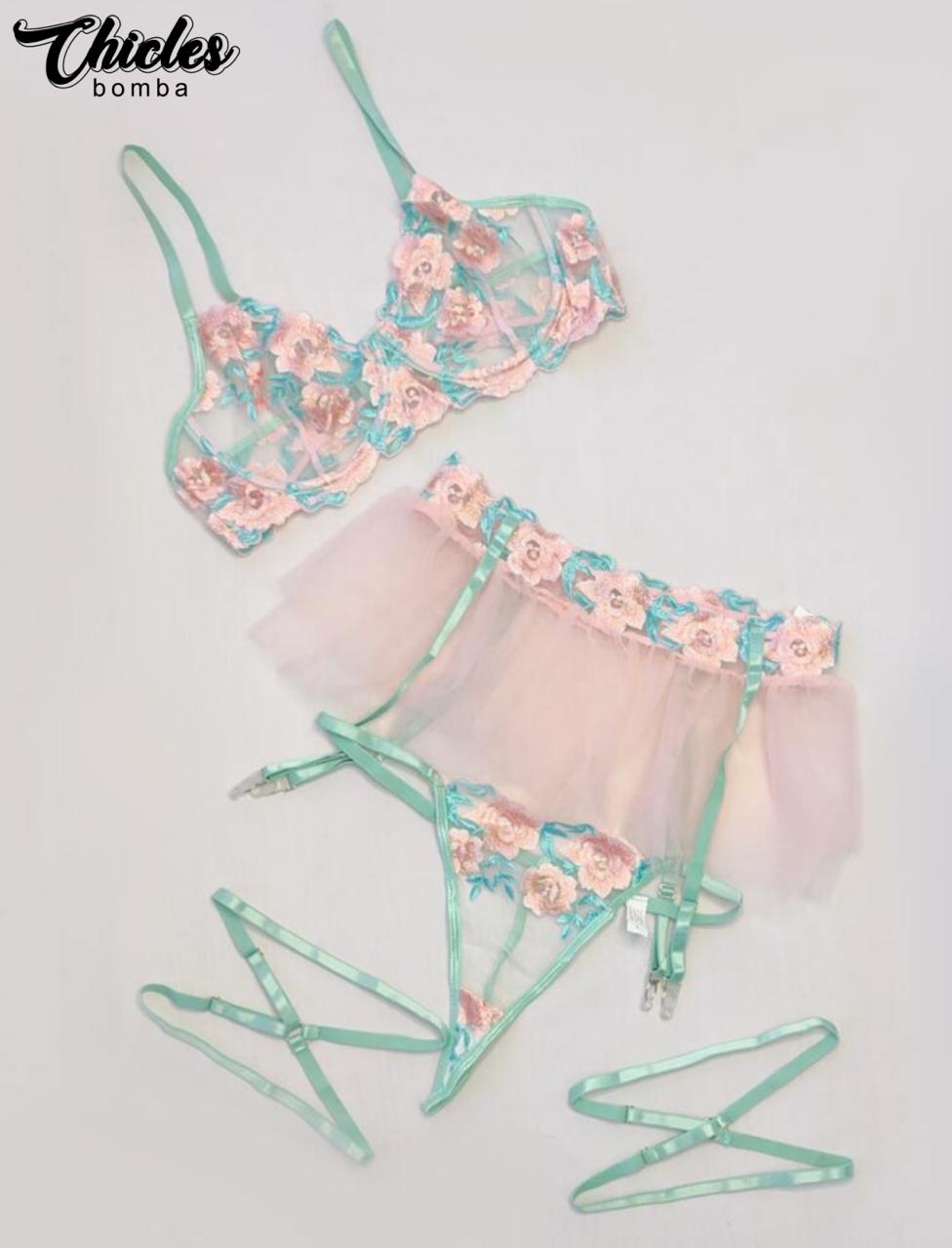 Envuélvete en pura sensualidad con este exquisito conjunto de lencería de encaje. Suave al tacto y con detalles que resaltan tu figura. Los tirantes ajustables garantizan un ajuste ideal, mientras las transparencias añaden ese toque irresistible.